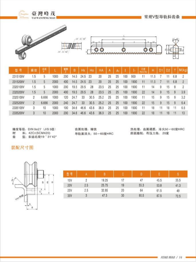 V型導軌斜齒條DIN9級